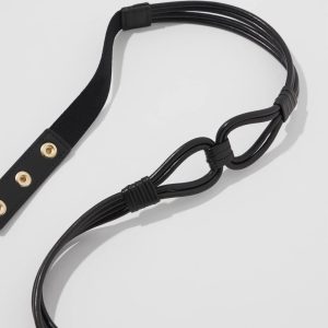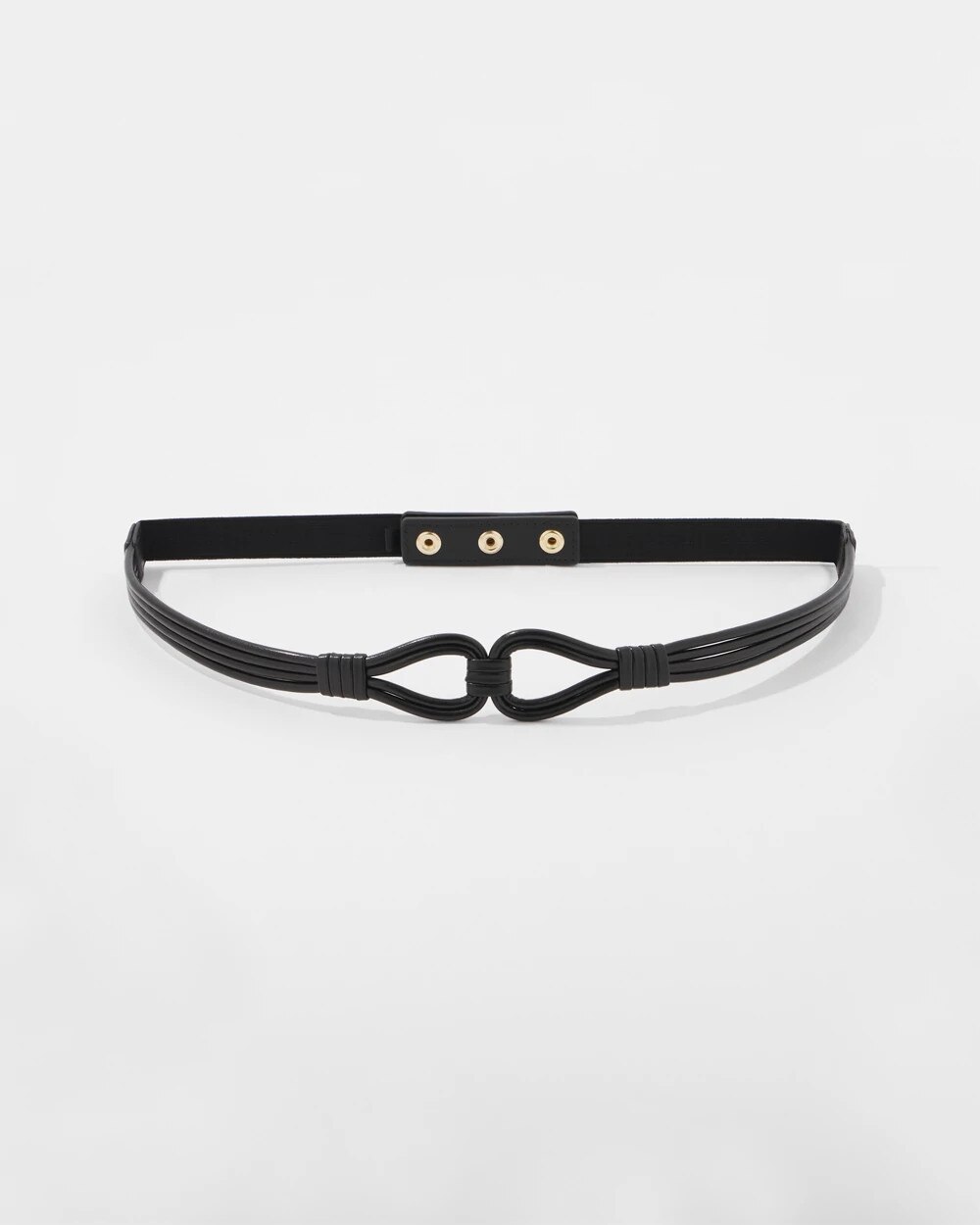 Show-off your waist by adding this skinny stretch belt with knot detail to your dresses. Pair it with matching knotted slide for a great outfit.