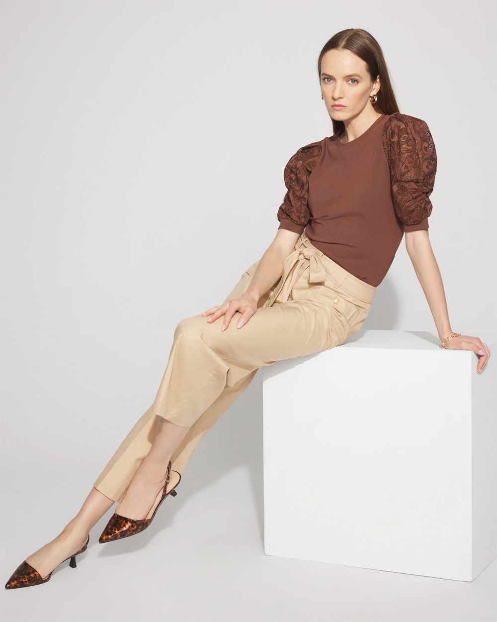 Lace Puff Sleeve Crewneck Tee