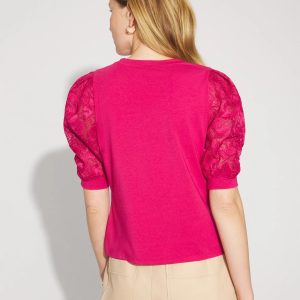 Lace Puff Sleeve Crewneck Tee