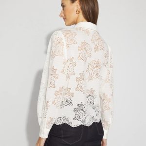 Crafted from feminine lace, this long-sleeve button-down shirt has a collar, front button placket and cuffs. The allover lace finishes in a scalloped hem. This shirt is sheer so layer it under WHBM FORME™ or a cami.
