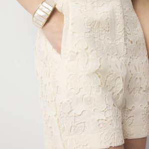 Dress up your summer days with these feminine lace shorts designed with a figure-flattering Hollywood waist.