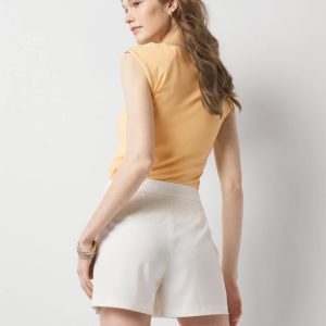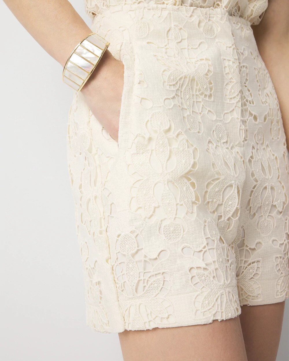 Dress up your summer days with these feminine lace shorts designed with a figure-flattering Hollywood waist.