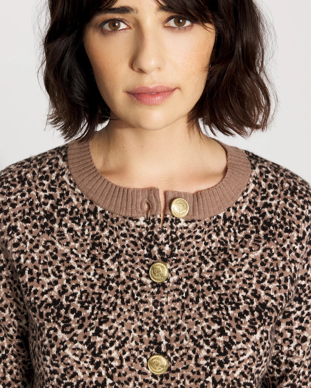 We’re wild about this leopard print cardi! With ribbed trim and soft gold buttons, it’s an elevated sweater that you can use as a light layer or wear on its own.