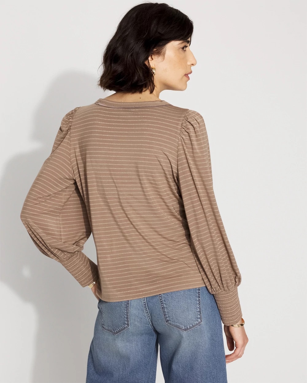 Created with the casual comfort of a tee and the design of a shirt with much more style. It starts with an easy relaxed fit, but it’s the long bishop sleeves with smocked cuffs that really stand out.