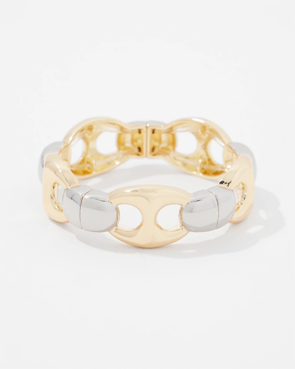 Board the nautical trend this summer with this mariner links stretch bracelet. Comprised of gold and silver, it’s an easy way to add shine to your outfit. Mix and match with other pieces in our Mariner Links Collection.