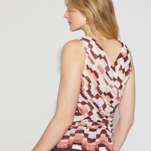 Crafted from a soft nylon mesh fabric, this self-lined tank top has a surplice neckline and back. Shirring details throughout the body give you a flattering shape. A fitted top that will look chic with denim or black pants.