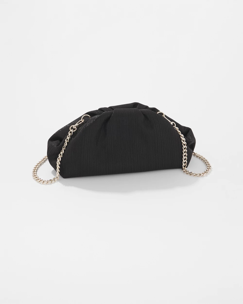 This timeless bag can be worn with the gold chain as a crossbody purse or remove the chain for a fashionable clutch for evening. Made from a metallic fabric that gives you a touch of shine, this clutch matches back to our Bow Slingback Pump.