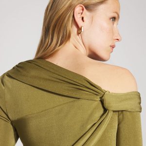 This metallic knit tank has knotted details that split over the shoulder. A relaxed yet elevated tee that will dress up your denim or shorts.