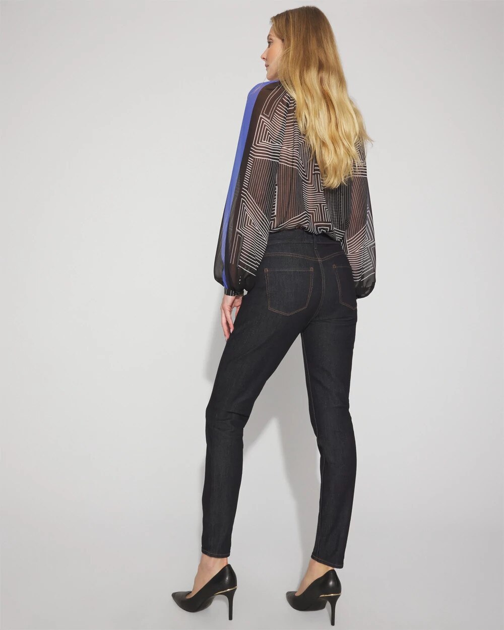 • Skinny fit: fitted from hips to leg opening
