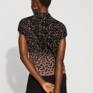 The ombre leopard print is statement making on its own, then we added lurex for a slight allover sheen that elevates the look further. An easy mock neck and short sleeves give this sweater a modern silhouette.