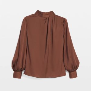 Mock Neck Satin Jacquard Blouse