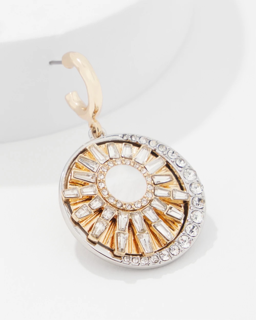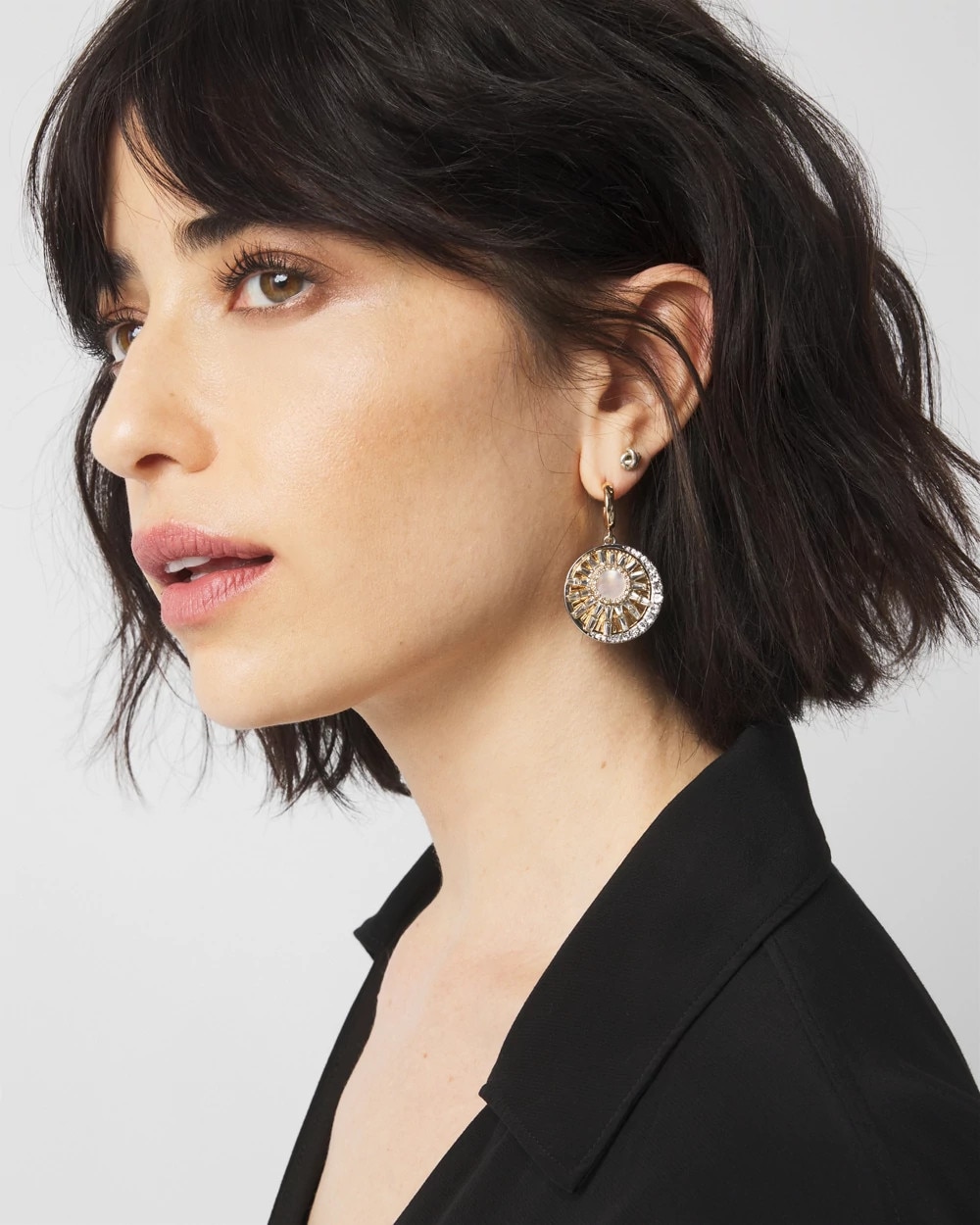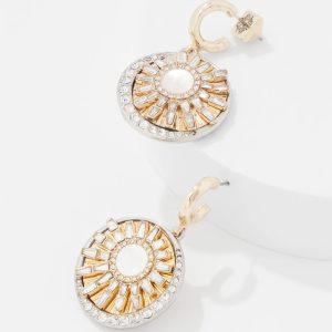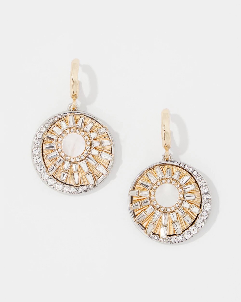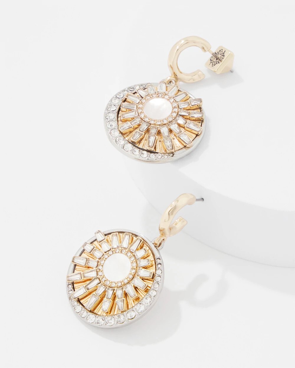 These drop earrings have an abstract sunburst charm with a mother of pearl and gold-plated finish. A timeless look to add shine to summer outfits.