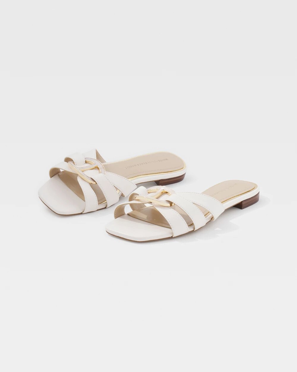 Create an elevated look for shorts and jeans or add extra style to your dresses with these timeless strappy flats that are designed with a mother of pearl buckle. Accessorize with jewelry pieces from the Mother of Pearl Collection.