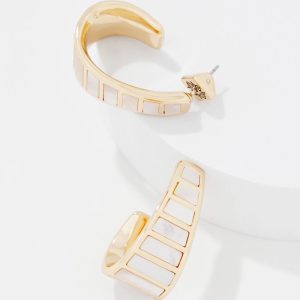 Iridescent mother of pearl is framed by gold-plated ladder trim for a stunning yet simple hoop.