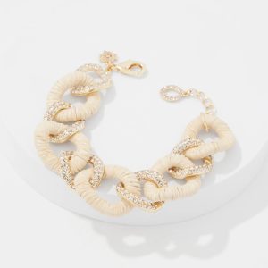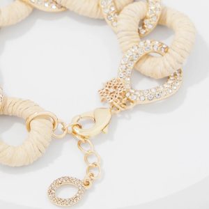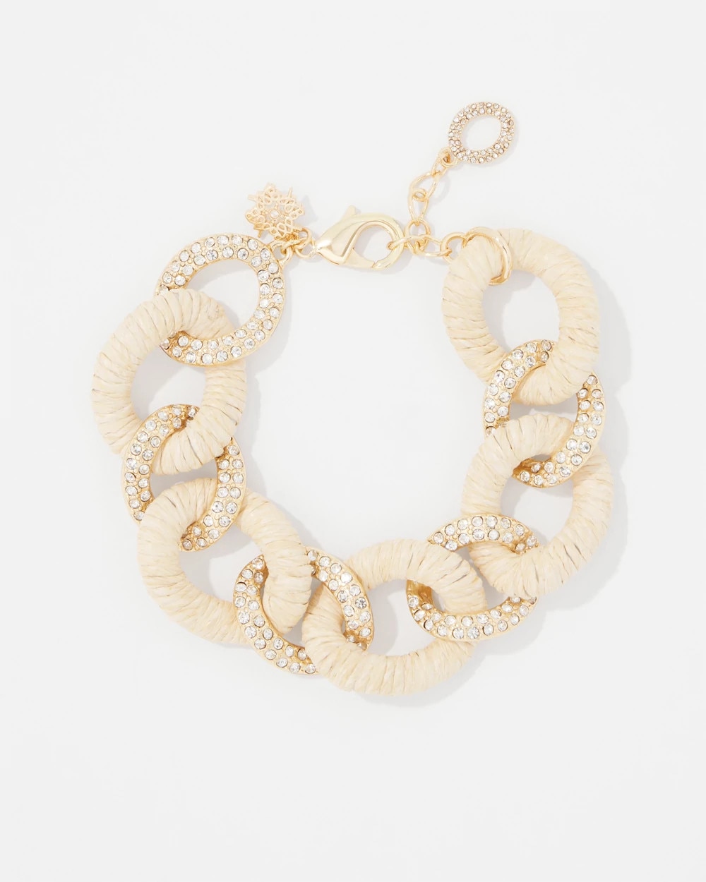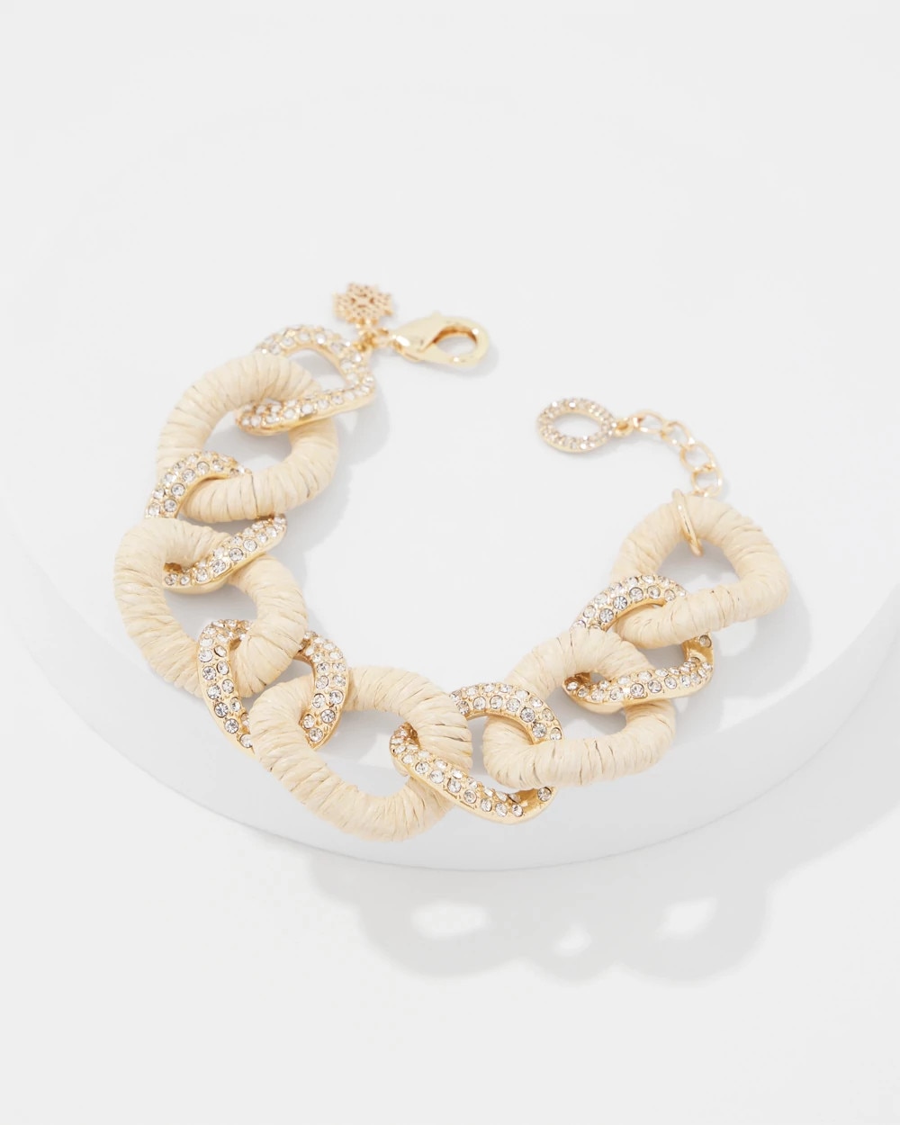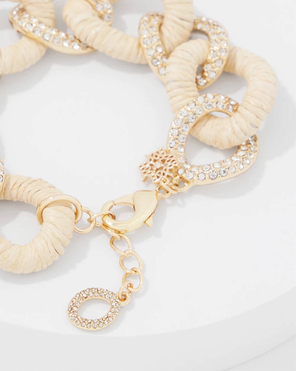 Dangle this raffia and gold bracelet on your wrist for a touch of summer bling thanks to crystal embellishment. A luxe looking piece that you can mix and match with other items from our Raffia + Crystal Collection.