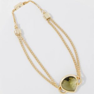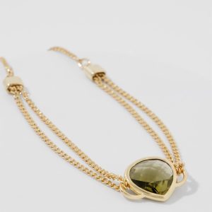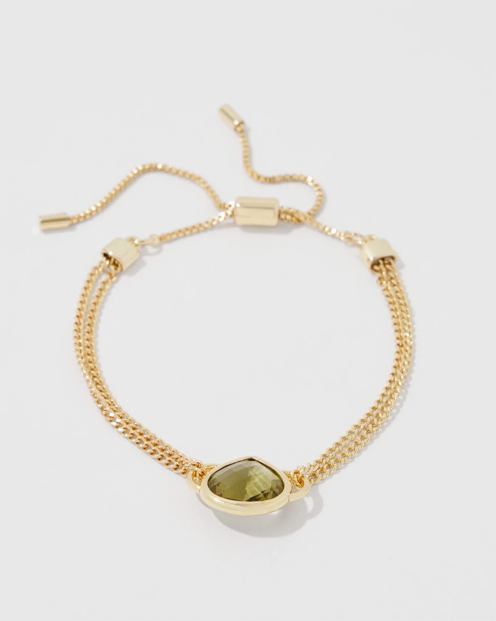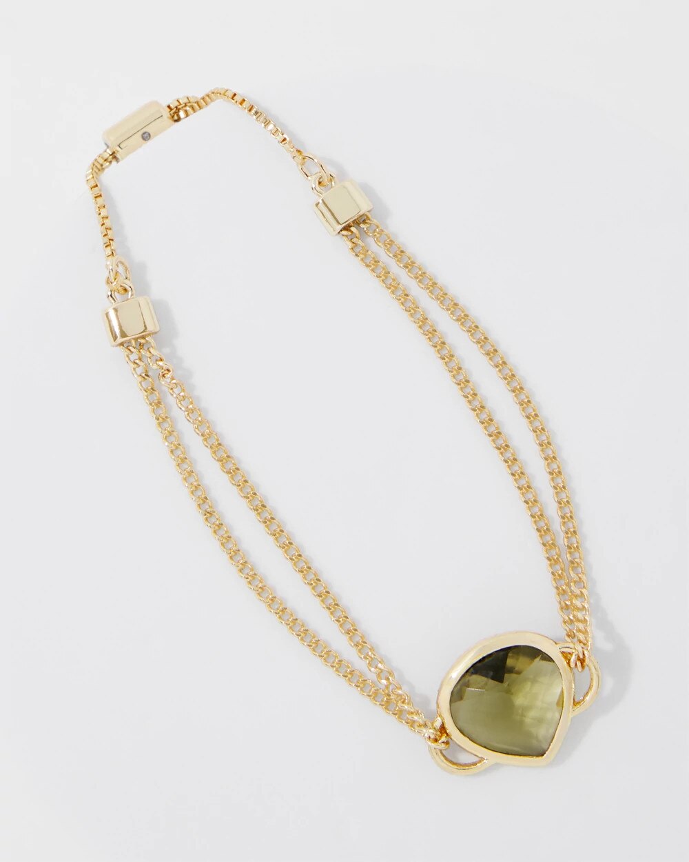 A single glass stone in a striking olive hue is the centerpiece of this two-strand gold chain bracelet. A friendship closure makes it fully adjustable. Pair with other pieces from the Olive Group Collection.