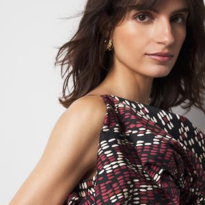 The puff sleeve and top of the bodice on this one-shoulder bustier add the right kind of drama to your look. The bustier has boning and gripper tape to ensure a secure fit. The single spaghetti strap can be adjusted or removed giving your styling options. Made from hot-weather friendly lyocell and cotton. Tie our matching print scarf to your neck or handbag for added chic.