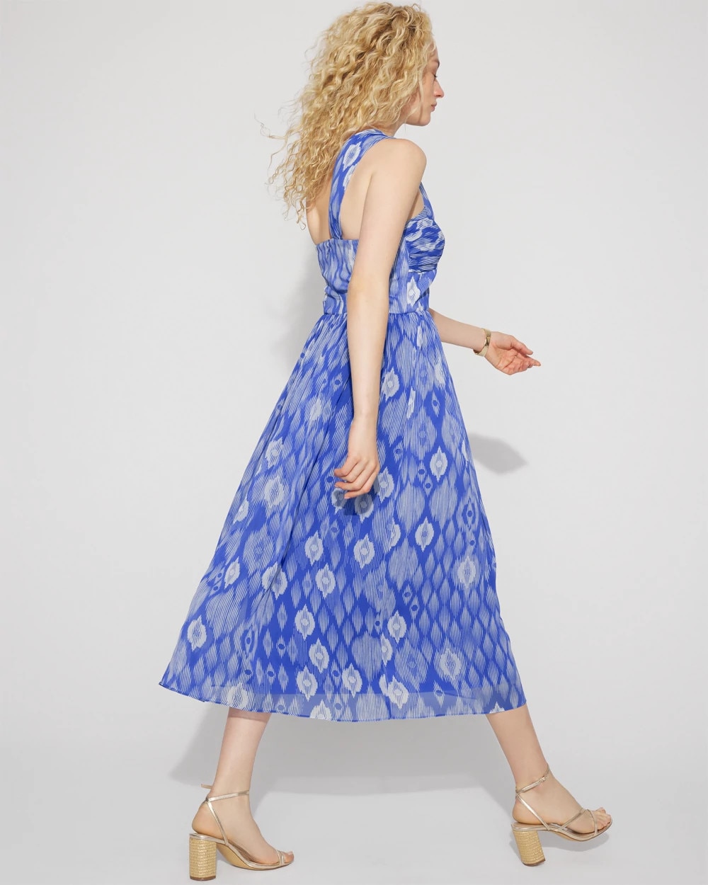 A stunning ikat print is one feature that makes this midi dress stand out in the crowd. The one-shoulder asymmetric strap design and bustier construction finished by a flowy skirt give you a flattering + feminine shape. The bodice has boning and gripper tape for hold.