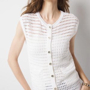 This open stitch cardigan vest is the ideal warm weather layer. It has front pockets and pretty buttons for closure. Wear it open or closed over your favorite tee or WHBM FORME™ top.