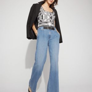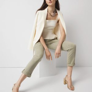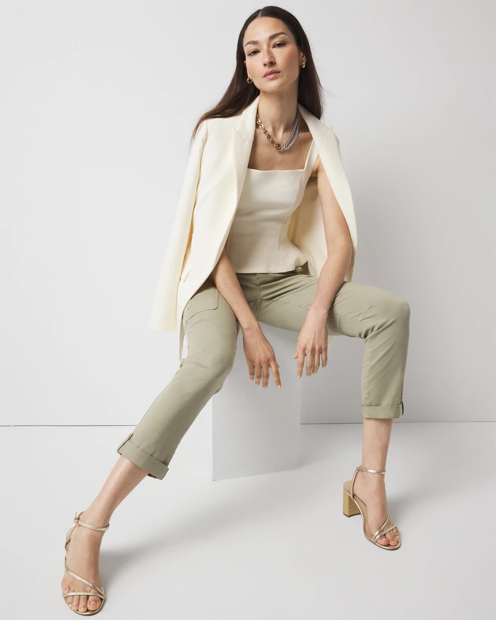 This bustier tank top has wide straps and seaming details that flow into a peplum waist. The square neckline is waiting for your favorite statement choker or necklace. Create an elevated summer suit for special occasions or just because when you pair this top with our open front blazer, tailored short or wide leg pant, all cut from the same lightweight summer crepe fabric. Bellissima!