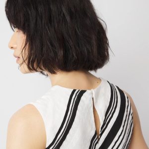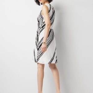Summer dressing is effortless with this textured striped asymmetric dress with a twist detail at the waist. Layer under a blazer for the office or wear as it is for casual dinners or brunch.