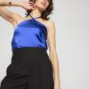 You love our bustiers for their sexy, feminine style. This latest version is made from a plaid fabric with a beaded floral embellishment that’s perfect for fall. The draping across the bodice and asymmetric hem gives you shape. Pair it with pants, jeans or a skirt.