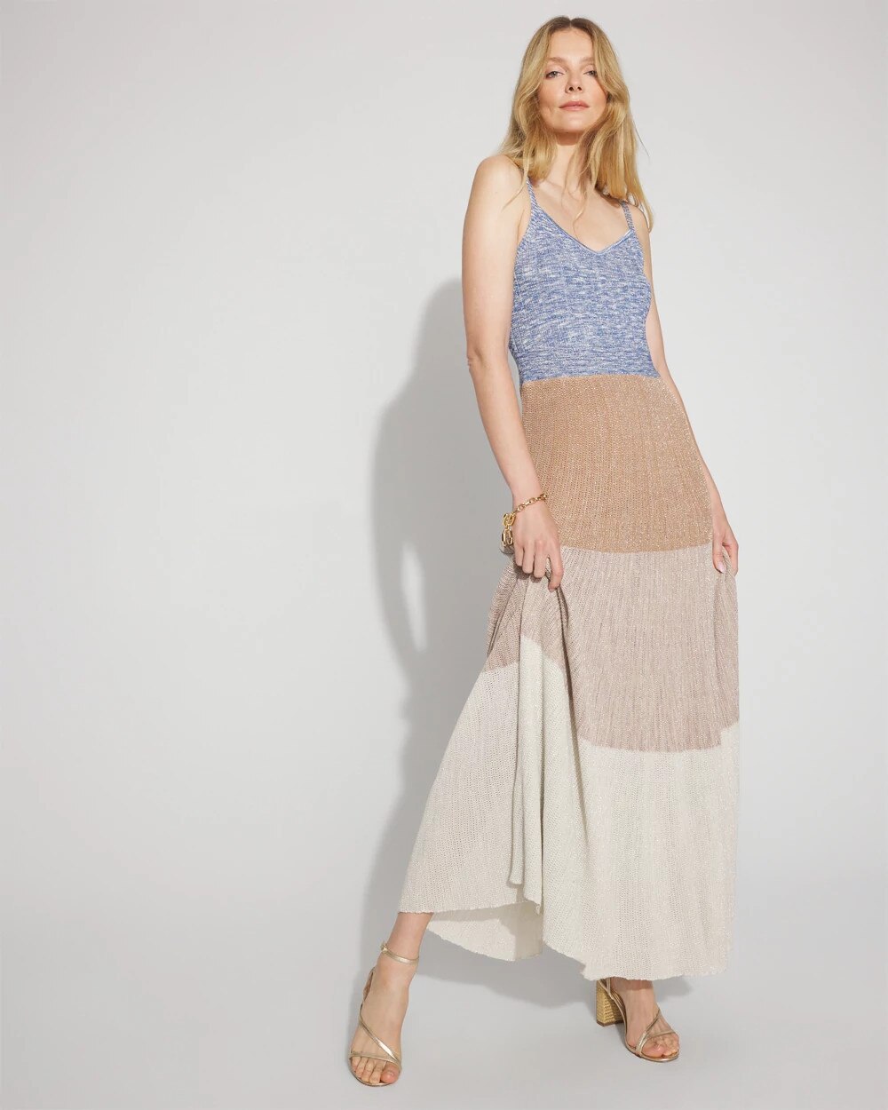 Petite Colorblock Shimmer Sweater Maxi Dress
