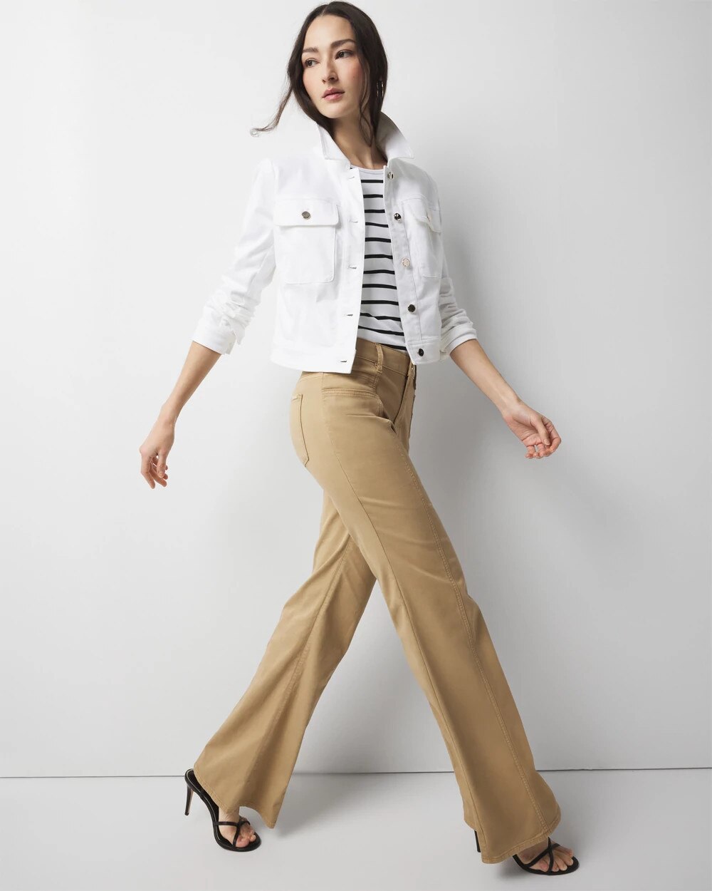 A jean jacket is a fashion icon, we’ve updated this version to be cropped with utility pockets. The hammered metal buttons are another designer touch that elevates this denim jacket. Wear it all season long and beyond. Pair with matching jeans for head-to-toe warm weather vibes.