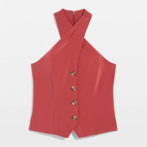 Business + pleasure is the theme of this halter top with inspo taken from classic menswear vests. Wear under a blazer by day, on its own by night.