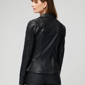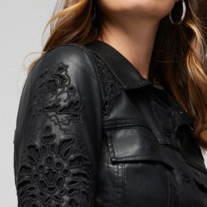 The artisanal jacket of the season is here. Luxurious coated denim looks like leather but better, it’s easier to wash. It’s also easier to detail with the intricate laser cutouts that make this moto jacket truly unique. The cinched waist with a subtle peplum flare is ultra flattering (and just one of the reasons we call it flirty).