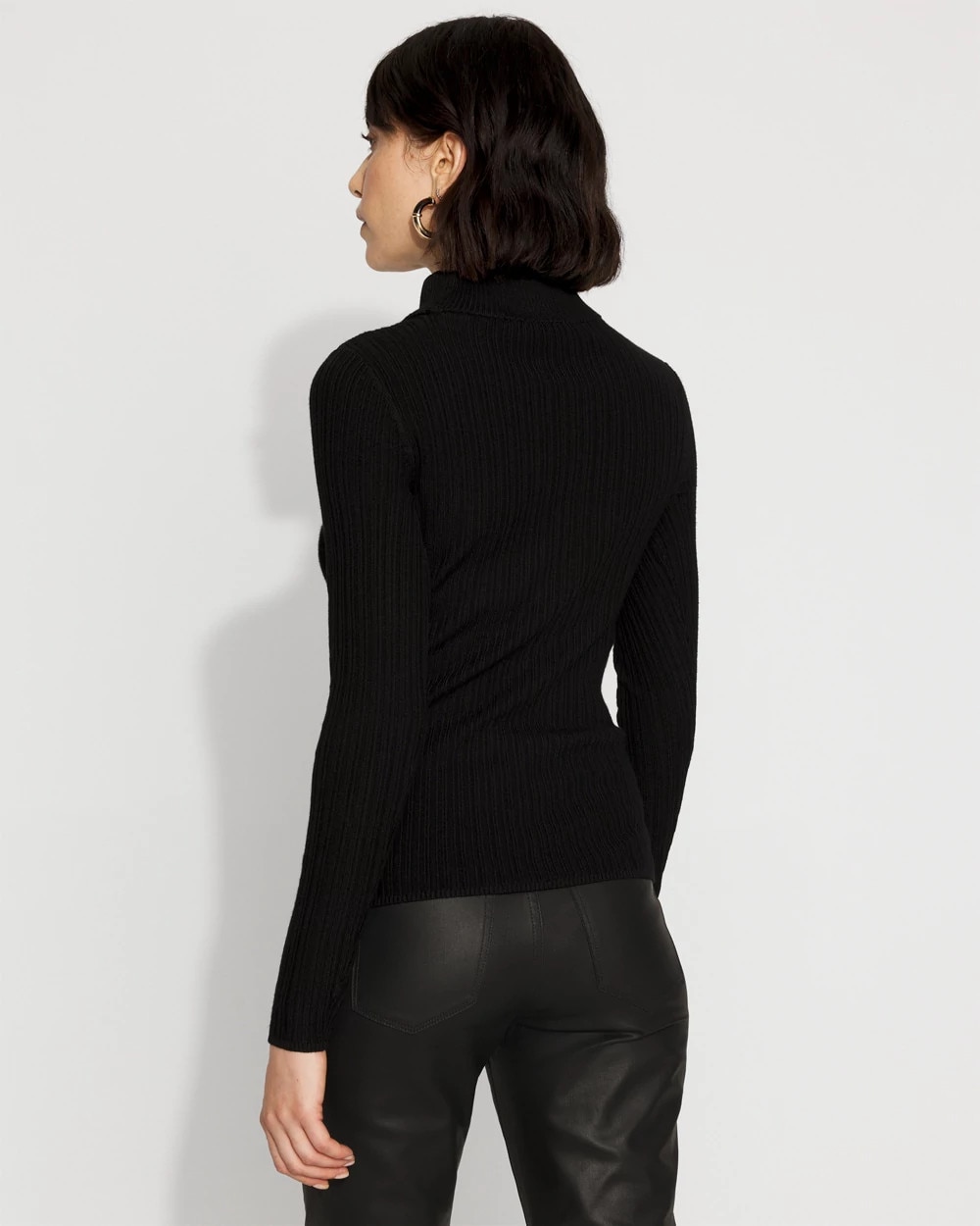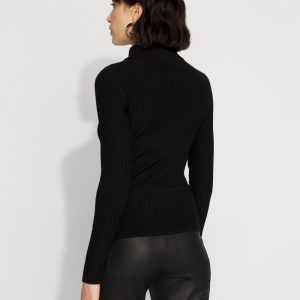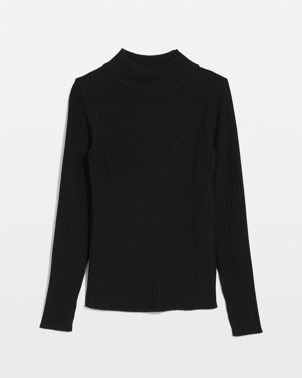 Everyone needs at least one fitted mock neck sweater; it’s a wardrobe essential. Easy to layer under jackets and blazers, it’s also a sleek look with jeans, pants and leggings or skirts. This one is ribbed for ease.