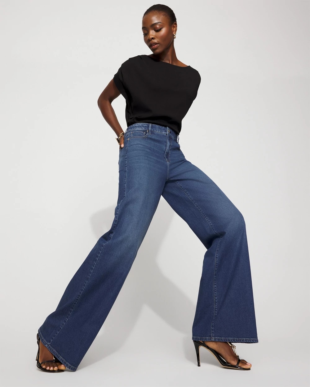 Meet the palazzo, our newest fashion wide-leg jean, designed with a dramatic super wide silhouette from hip to hem for a relaxed look. Cut from a drapey, lightweight denim fabric for maximum comfort and flow.
