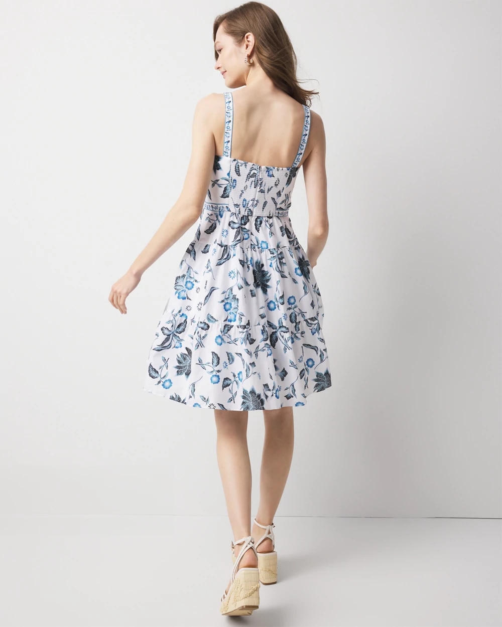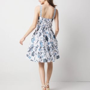 A timeless summer dress, its fit and flare silhouette is flattering and feminine. Designed with a tiered skirt for fullness and a smocked back for ease, it’s made from 100% cotton voile, a lightweight, soft fabric that’s perfect for hot weather.