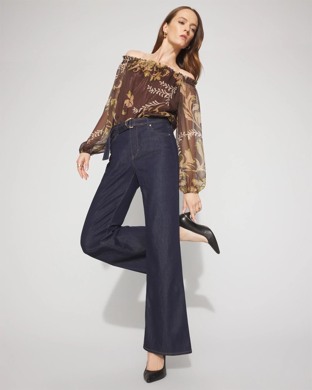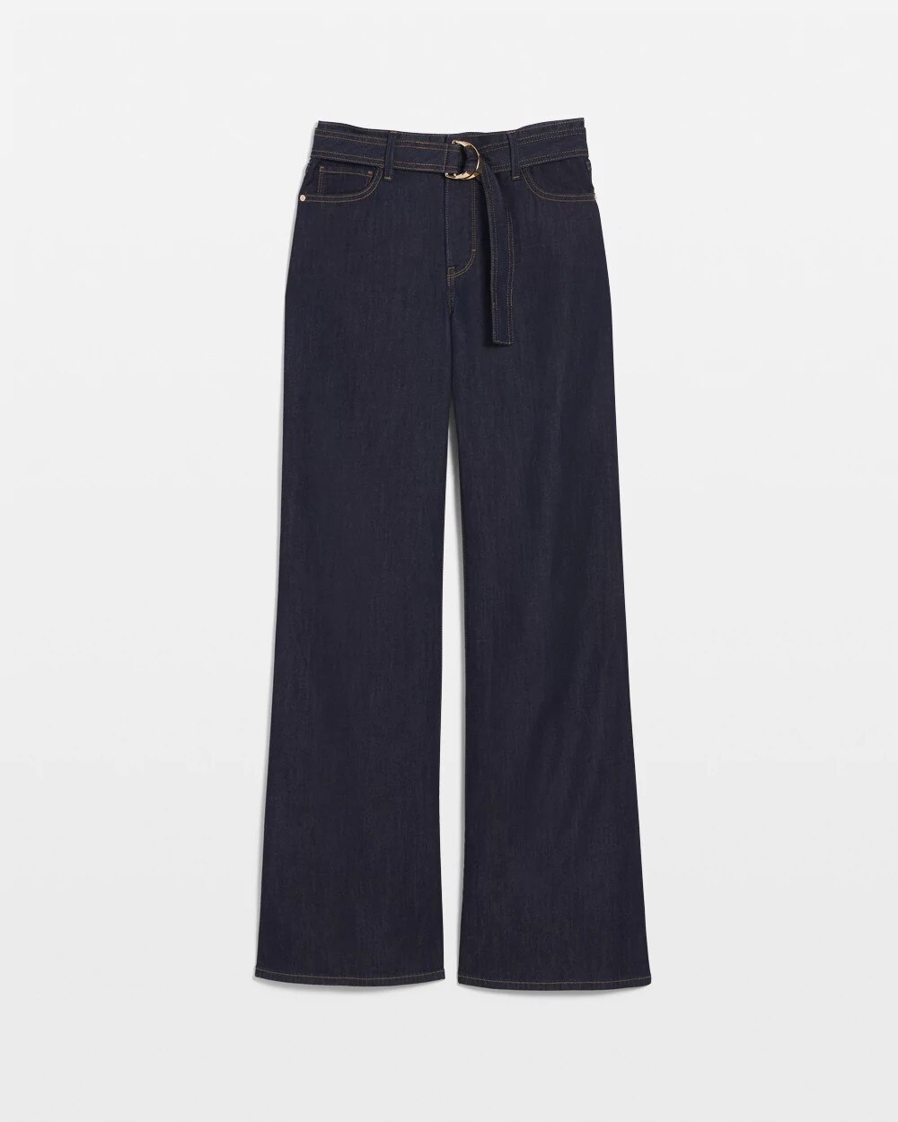 A dark rinse and gold D-ring belt elevates these wide-leg jeans. A polished denim style to dress-up for the office with a blazer and heels. We also heard you on our inseam and we’ve shortened our regular length 1-inch, while keeping the short and long lengths you love.