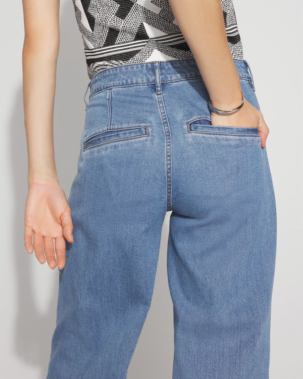 We’ve added pleating and an attached leather belt to these wide-leg jeans for a more polished + easy-to-wear look. Front slash pockets and back welt pockets add to the tailored vibe. We also heard you on our inseam and we’ve shortened our regular length, while keeping the short and long lengths you love. Dress up with heels or boots.