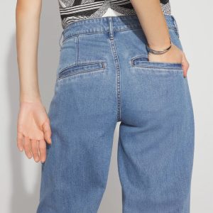 We’ve added pleating and an attached leather belt to these wide-leg jeans for a more polished + easy-to-wear look. Front slash pockets and back welt pockets add to the tailored vibe. We also heard you on our inseam and we’ve shortened our regular length, while keeping the short and long lengths you love. Dress up with heels or boots.