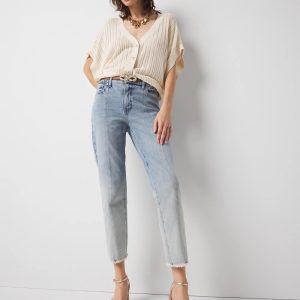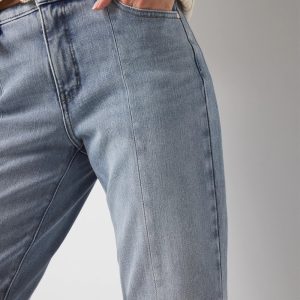 Petite High-Rise Raw Hem Pintuck Straight Jean with Slit