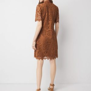 We put an extra feminine spin on the classic shirt dress by designing one in lace. The all over lace look is finished with a scalloped edge at the hem and cuffs. The partial front placket is functional so you may unbutton or button to the top depending on your preference. The faux pockets are a nod to the button-down shirt, a wardrobe staple that’s always timely.