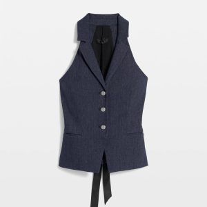Petite Longline Halter Vest with Lace-Up Back