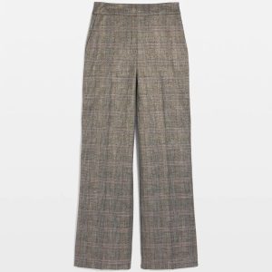 This high-rise pant features a flat front, wide legs and subtle gold lurex woven into the plaid. Slant pockets and back darts keep the fit flattering. Pair it with the matching jacket for a statement-making look.