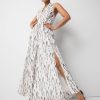 We’ve given this LBD maximum impact by added volume to the off-the-shoulder neckline as well as bustier construction with boning and corset seams in the bodice. The skirt has a side slit to show some leg. The jacquard fabric has a lux texture that makes this midi dress a special occasion choice.