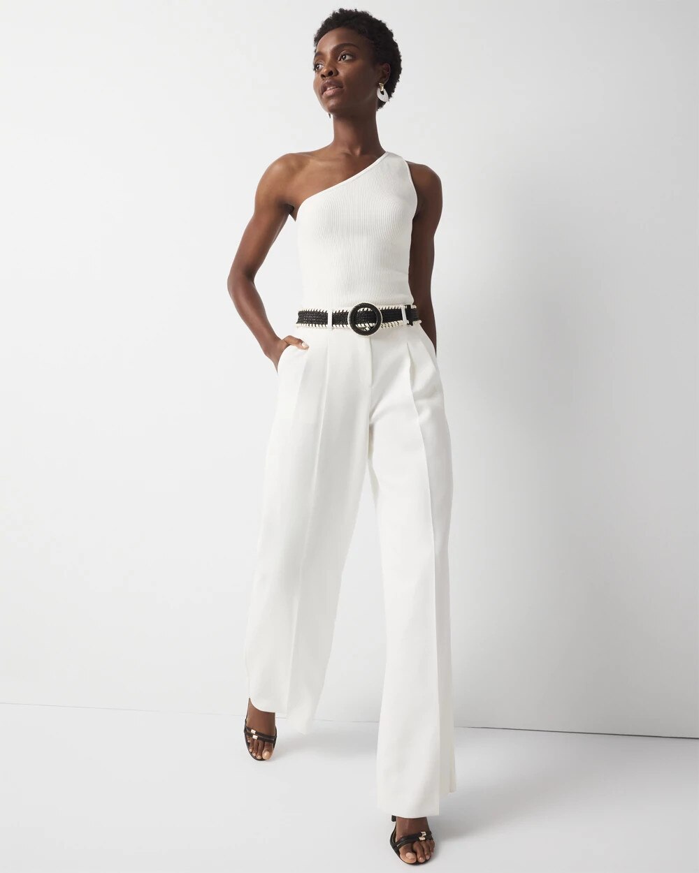 We’ve updated the fabric in our classic pleated wide leg pants to one that give you a flattering, supple drape. Pair this new pant with your favorite tops and heels.