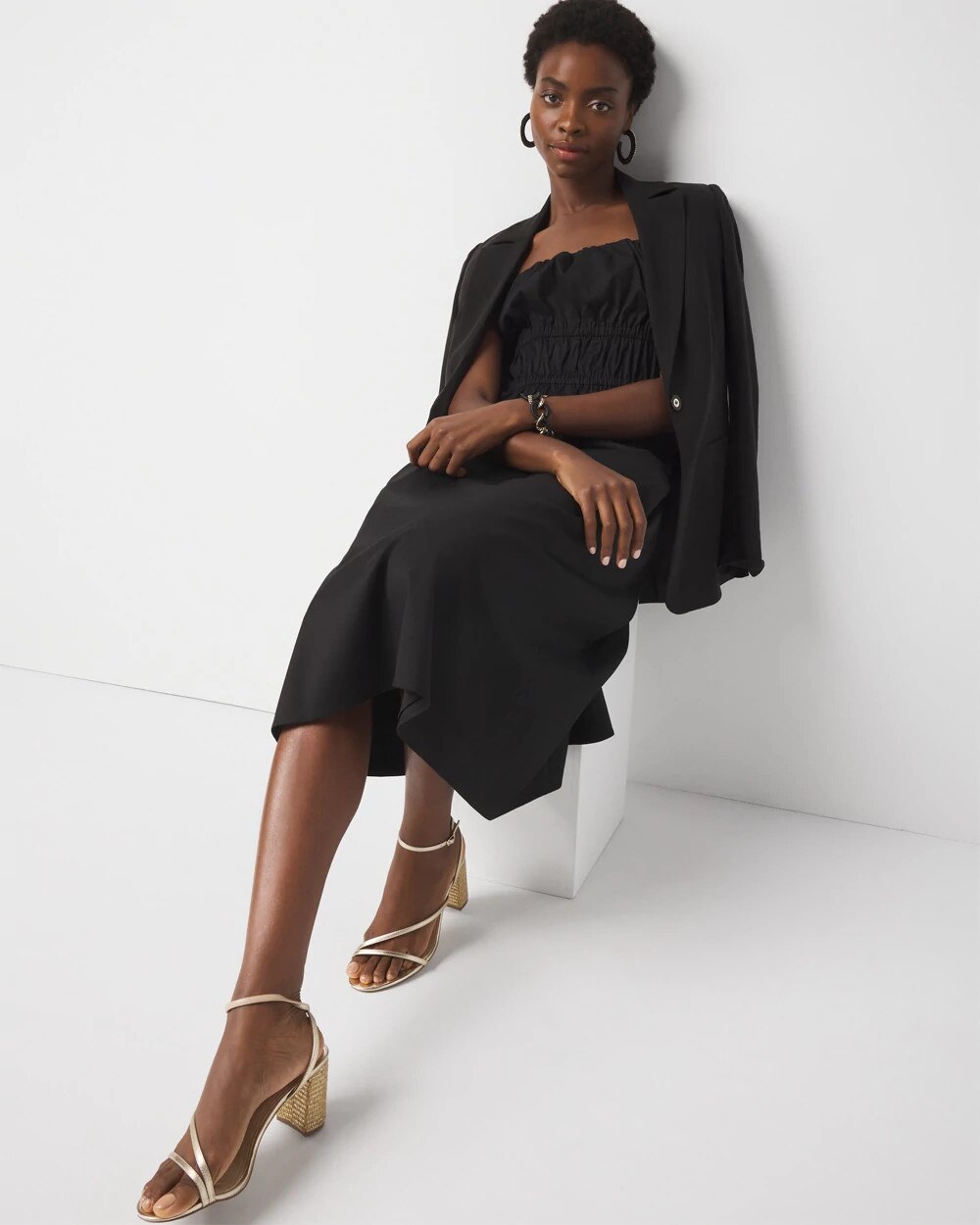 We designed this fit and flare midi dress from cotton-blend poplin and added smocking at the back and an adjustable tie. An easy summer dress for any occasion.