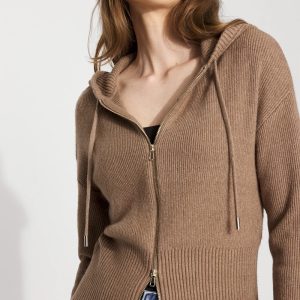 Crafted from a super soft yarn that’s knit into a textured rib pattern, this elevated take on the timeless hoodie will quickly become a closet fave. The two-way soft gold zipper and matching metal ends on the strings add a touch of glam. Wear it with everything.