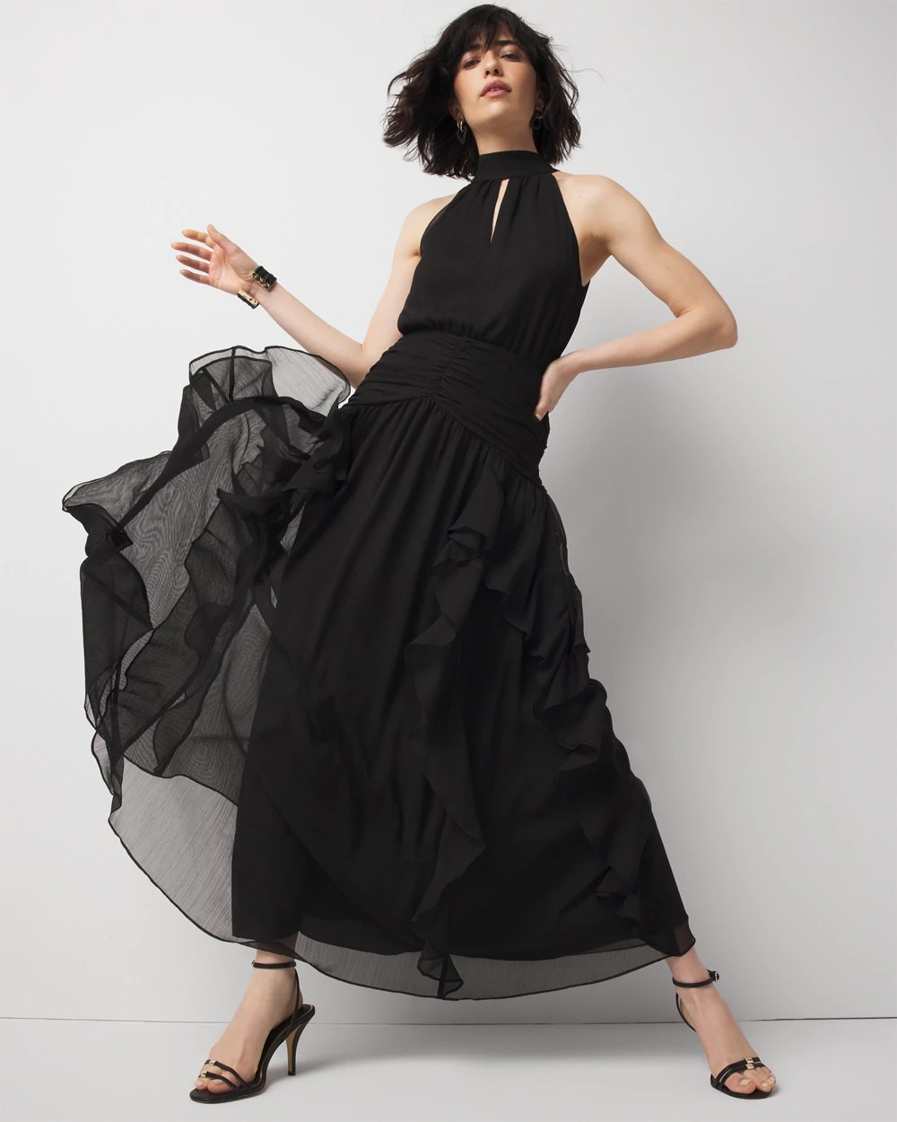 Petite Ruffle Halter Maxi Dress