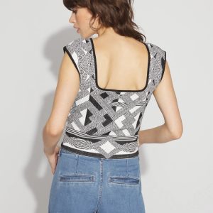 A textured jacquard tank top with a bold geometric pattern that is part of our WHBM FORME™ Sculpt Stretch collection, giving you unparalleled fit that conforms closely to the body and lets you move comfortably. Pair this cropped tank with its matching Geometric Jacquard Sweater Skirt for a full look.