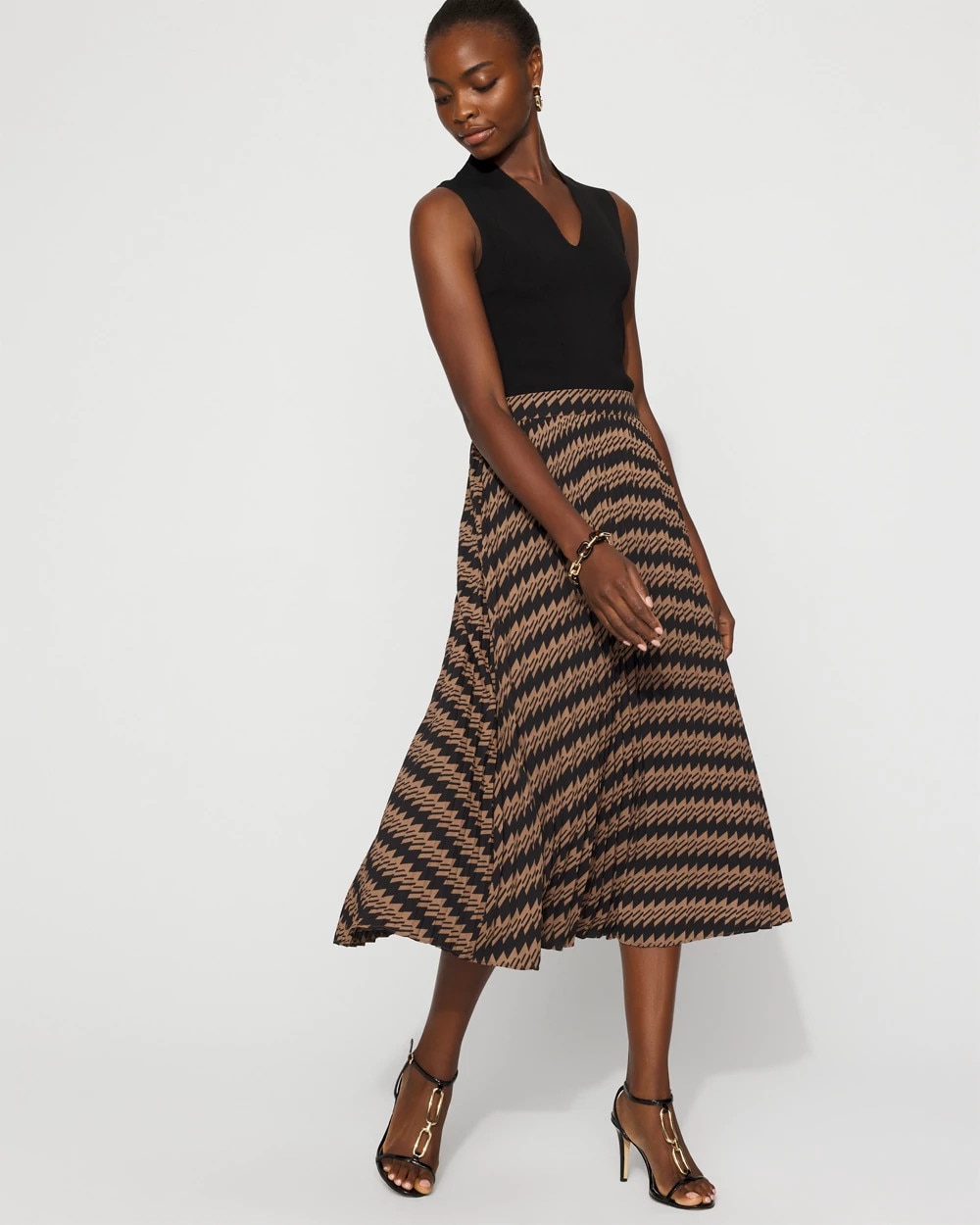 Reach for this geo-printed pleated midi skirt when you’re off to work or going out to dinner. It’s a versatile wardrobe staple that you’ll wear every season. Pair it with your footwear of choice, heels, flats or boots.