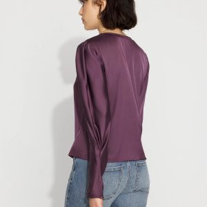 Designed with pleated sleeves to create a voluminous, dramatic silhouette, this satin blouse is the perfect pairing for your favorite pants.