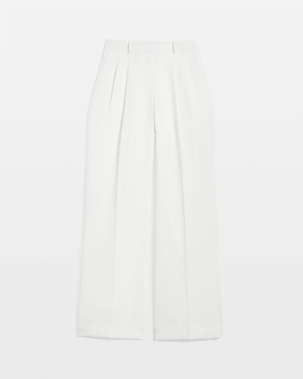 We’ve updated the fabric in our classic pleated wide leg pants to one that give you a flattering, supple drape. Pair this new pant with your favorite tops and heels.
