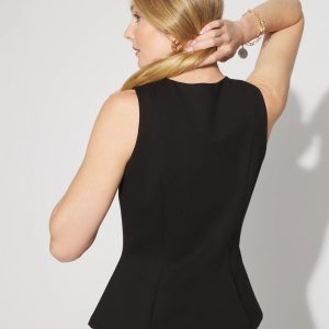 Crafted from a figure-flattering Ponte fabric, this sleeveless top has a V-neck and a tapered waist that flows into a peplum hem. An easy top to pair with black pants for a polished office look.